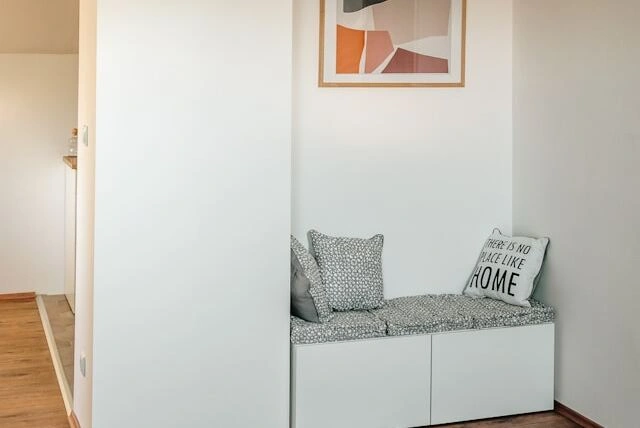 In small homes, horizontal surfaces fill up fast. That’s where vertical space becomes a game-changer. Use wall-mounted shelves above furniture, hang baskets or hooks behind doors, and consider over-the-door storage racks.